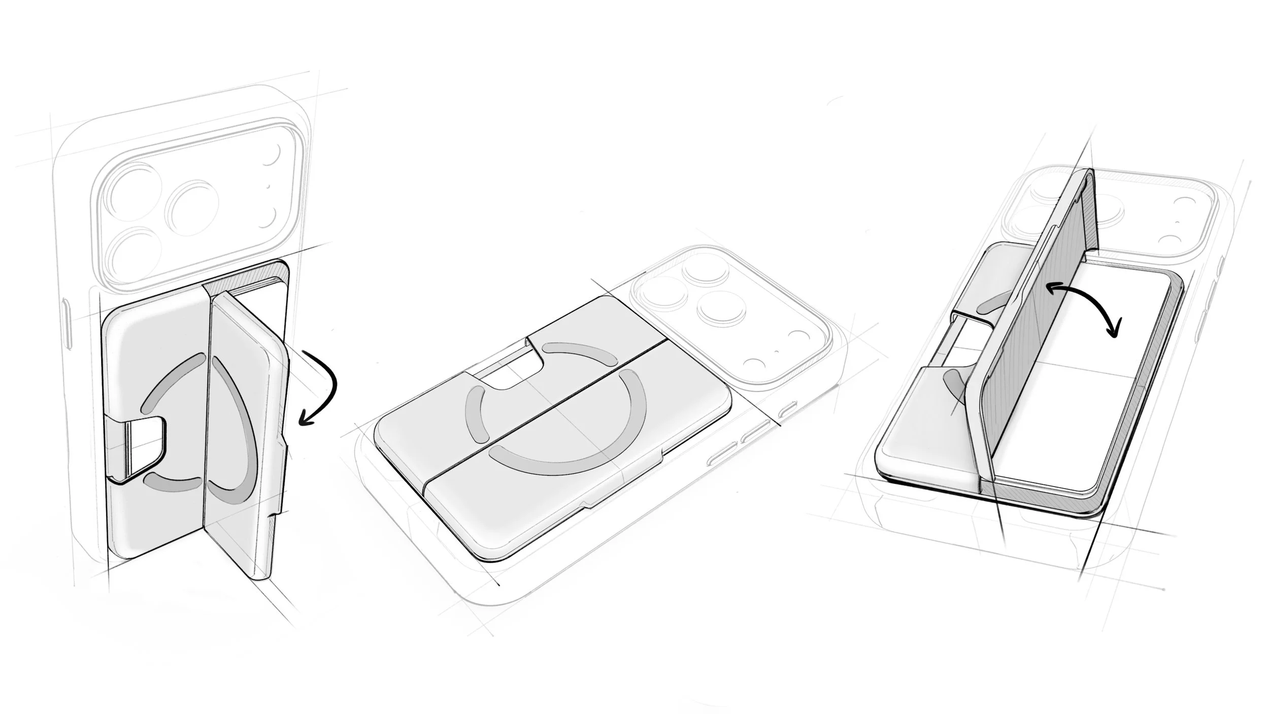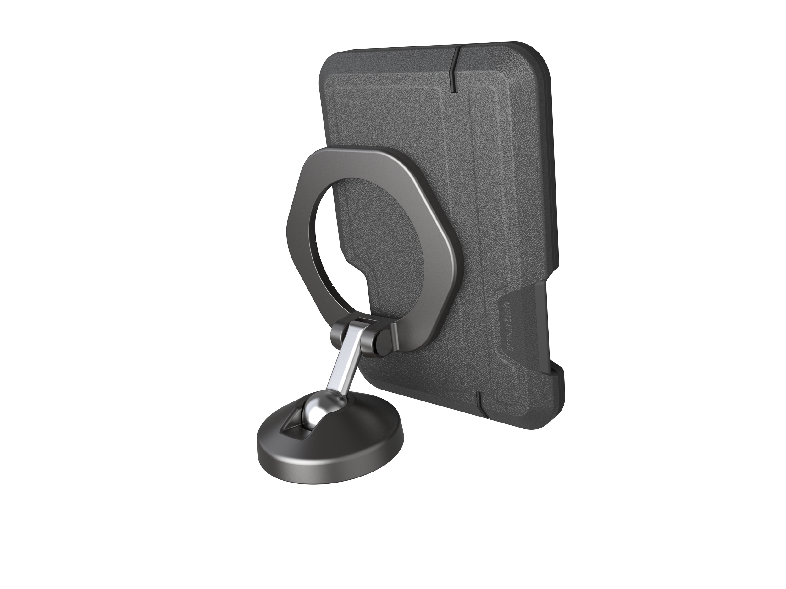 The magnetic system is dimensioned and aligned for consistent coupling with MagSafe-enabled devices and cases, allowing for stable use in grip, kickstand, and suction-mounted configurations. The silicone suction array provides temporary attachment to non-porous substrates such as glass, tile, and polished metal, with an approximate hold duration of up to one hour under nominal load conditions.